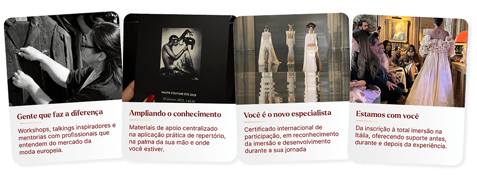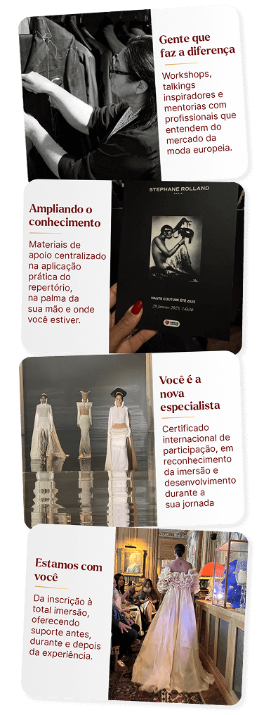 A imersão Dolce Far Moda é aberta a estudantes, profissionais, empreendedores e entusiastas da moda, mesmo que estejam começando. O essencial é ter interesse genuíno em viver a moda de forma profunda e transformadora.